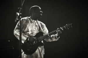 Often hailed as “The Hendrix of the Sahara,” Vieux Farka Touré is a Malian singer, songwriter and guitar virtuoso born in Niafunké in 1981. The son of desert blues legend Ali Farka Touré, he began his musical journey as a percussionist before secretly teaching himself guitar and developing a style defined by blistering speed, deep groove and melodic precision. Since his acclaimed self-titled debut in 2007, Vieux has toured worldwide, earning a reputation for electrifying live performances that cut through language barriers with pure musical power and charisma. His catalogue moves confidently between tradition and experimentation, with collaborations spanning Toumani Diabaté, Derek Trucks, John Scofield and Khruangbin. In 2022, Les Racines marked a powerful return to the deep roots of desert blues, reaffirming Vieux as one of Mali’s most vital contemporary voices.